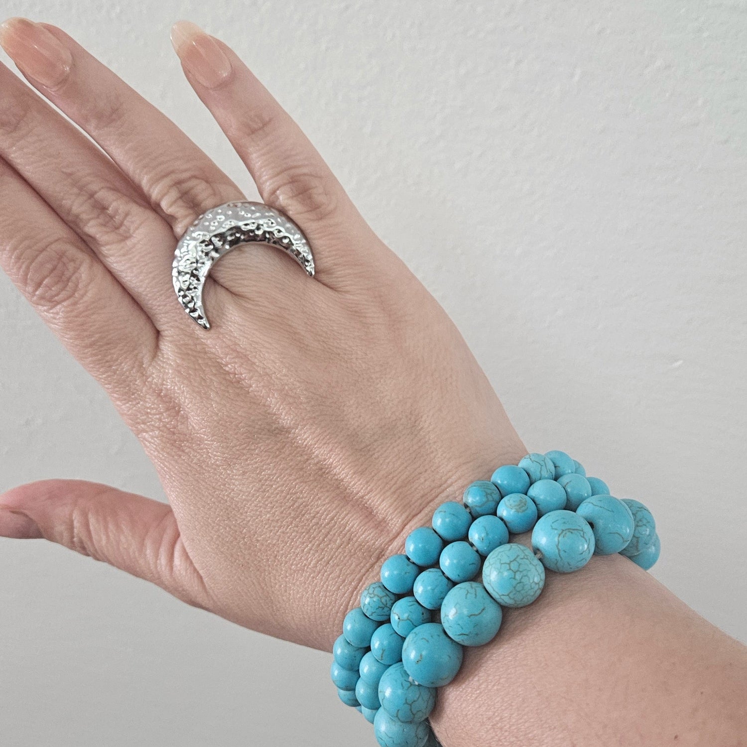 The Cresy Moon Ring is a bold, celestial-inspired statement piece crafted from high-quality stainless steel. Designed in a crescent moon shape with a hammered texture, this ring combines cosmic charm with a modern edge. Its polished silver tone makes it perfect for everyday wear, adding a touch of mystery and shine to any outfit.