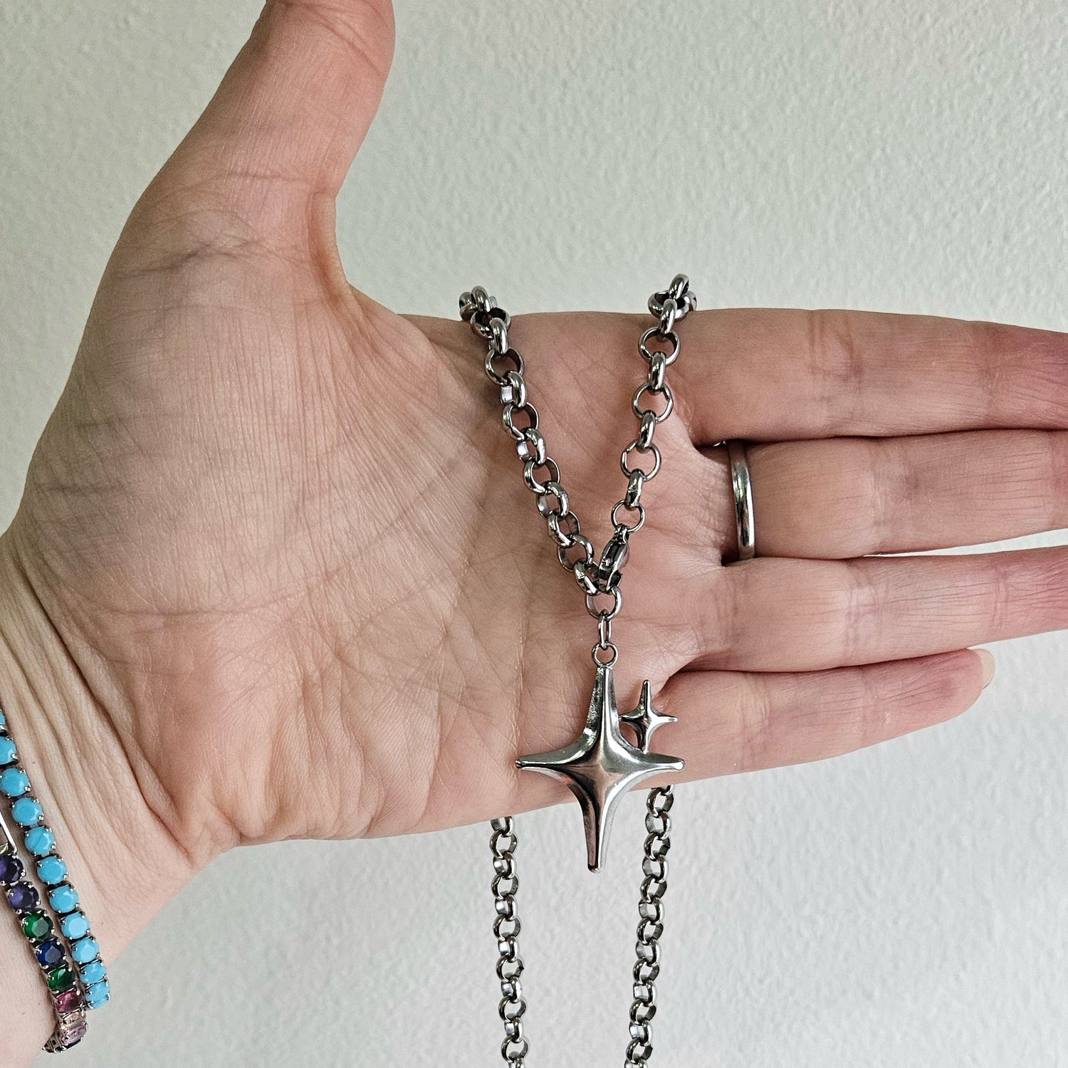 The Kari Necklace is a bold and modern piece crafted from high-quality stainless steel. Its chunky chain design is paired with a sleek star-shaped pendant, creating a celestial vibe that adds shine and strength to your look. Perfect for layering or wearing on its own, this necklace is both durable and stylish — made to last without tarnishing.