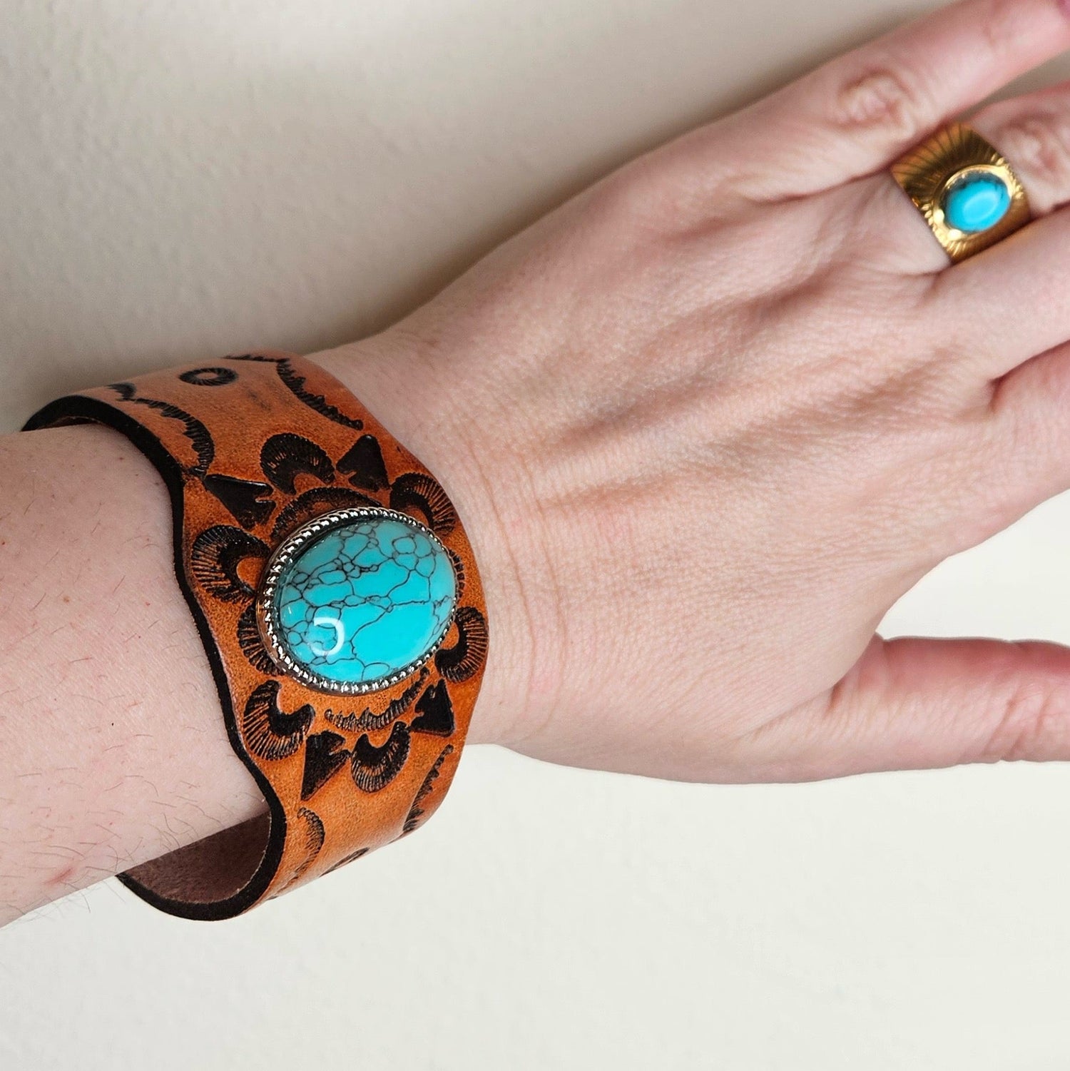 Pulsera ORANDA Cuero grabado con piedra turquesa