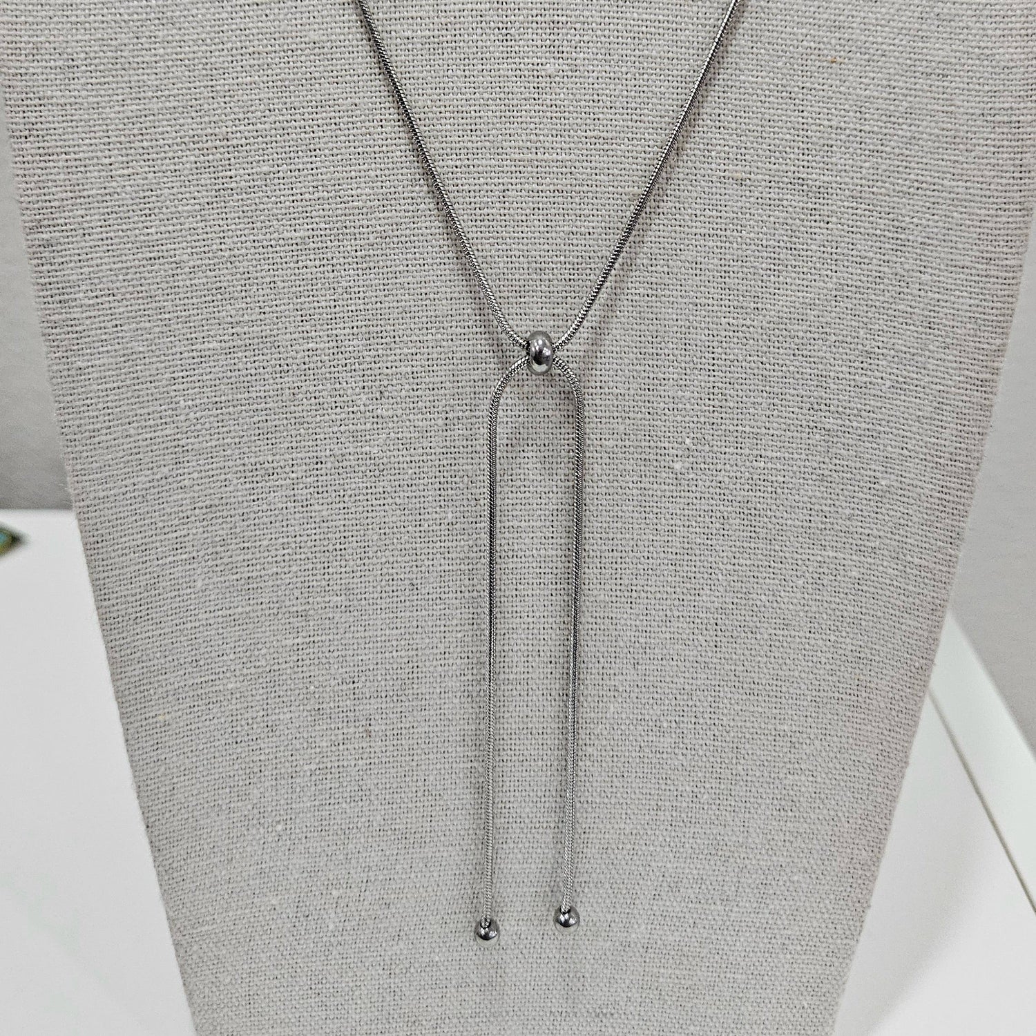 The Sully Necklace is a sleek and elegant lariat-style piece crafted from stainless steel. Its minimalist design features a smooth, round-bead slider that lets you adjust the length to your liking — making it both versatile and sophisticated.