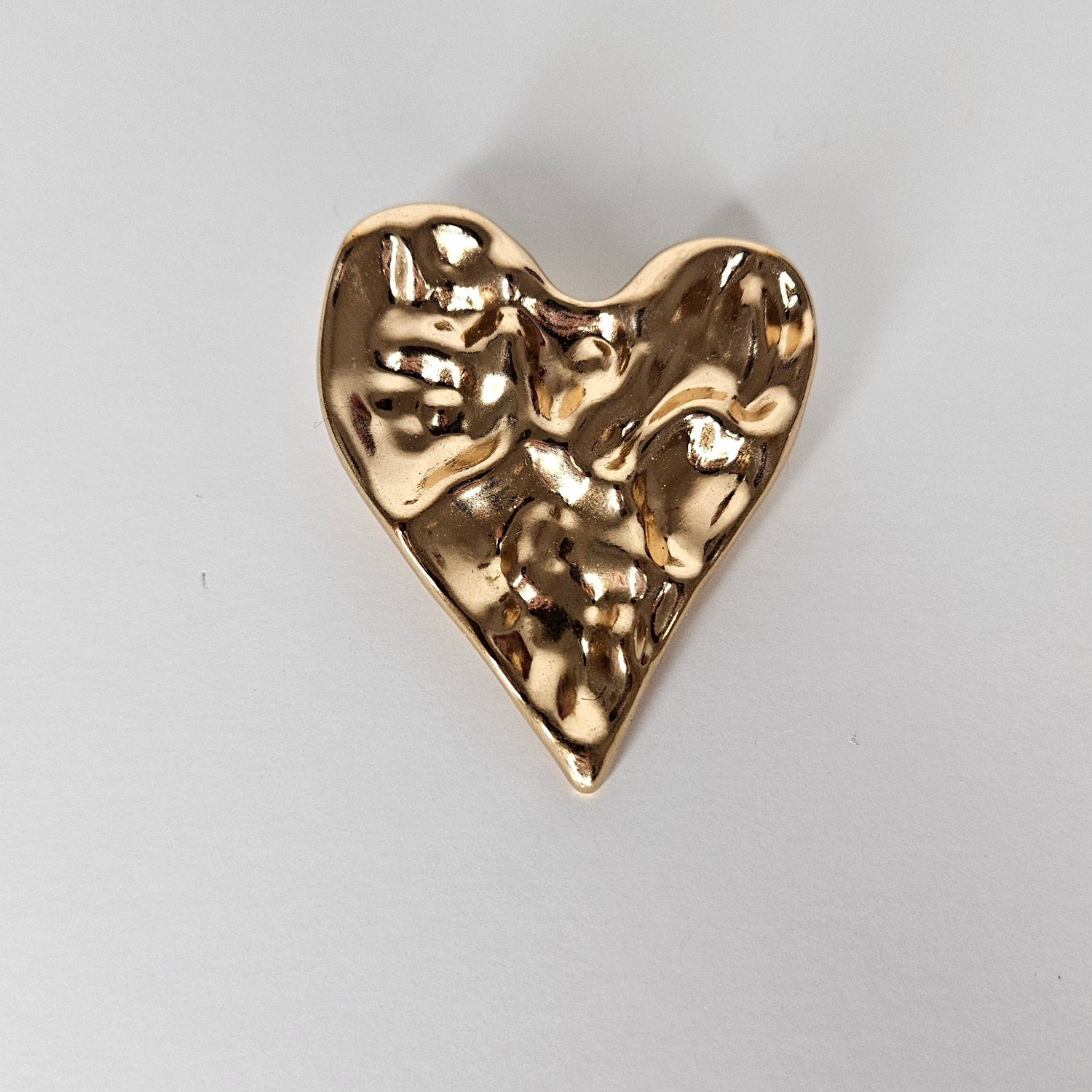 Sculptural heart-shaped brooch with an organic, molten-metal look that adds instant character to any outfit. Designed to stand out, this statement piece brings an artistic and modern touch whether worn on blazers, coats, sweaters, dresses, or bags.